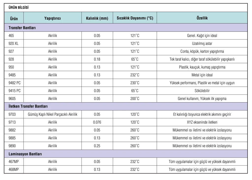 - Yüksek sıcaklığa dayanıklı yapışkan transfer bantları